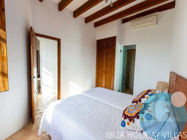 Arabí is a beautiful finca renovated in style. Well suited for a large family or group of friends. The finca sleeps up to 18 people and is located in Puig den Valls, just a few minutes drive from Ibiza Town. Rural for a quiet holiday yet close to bustling Ibiza with restaurants such as Cipriani, Lío. From the finca you can enjoy a beautiful view over the fields and the old part of Ibiza Town in the distance.