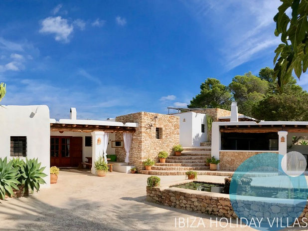 Clara is a super nice finca with 6 spacious suites with bathroom. The villa has 2 swimming pools, a round and an infinity pool, peacefully located in the woods near Cala Vadella. Central is the summer dining room with kitchen where you can enjoy a meal with your friends or family. There is a walking route on the property that leads to a gazebo from which you have a beautiful view of Es Vedra.