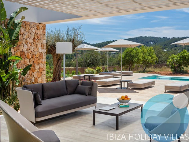 Olea is a beautiful modern stylish villa of almost 500 m2 with 7 suites. Superb exterior both indoors and by the pool. Quality furniture and a minimalist interior. The villa is surrounded by olive trees and overlooks the mountains and valleys and Santa Eulalia in the distance.